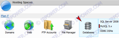 2) در بخش Hosting Spaces، آیکن Databases را انتخاب کنید.