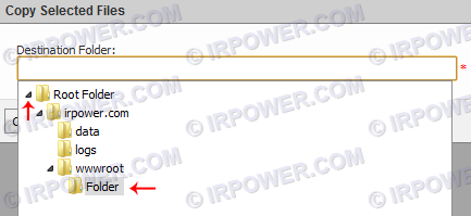 4) مقصد را از طریق لیست موجود انتخاب نمایید. (در تصویر زیر، به طور مثال فولدر با نام Folder در wwwroot انتخاب شده است)