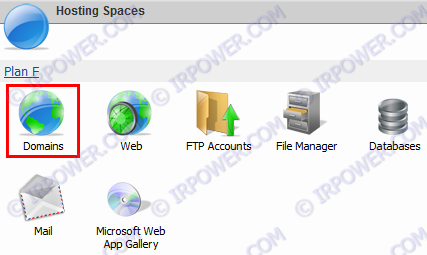 2) در بخش Hosting Spaces، آیکن Domains را انتخاب کنید.
