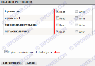 چنانچه چکباکس گزینه Replace permissions on all child objects را برای فولدرها فعال نمایید، تمامی آن تغییر سطح دسترسی برای تمامی محتویات آن اعمال خواهد شد. لذا بنابر نیاز خود آن را فعال یا غیر فعال نمایید.