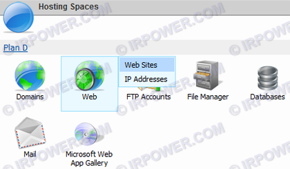 2) در بخش Hosting Spaces، به ترتیب به Web > Websites مراجعه کنید.