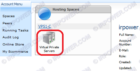۲) گزینه Virtual Private Servers را در وسط صفحه برگزینید.