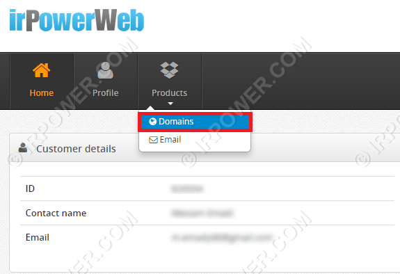 1- به پنل دامنه در Resello لاگین نموده و از منو موجود Products >> Domains را برگزینید.