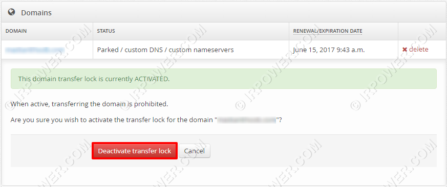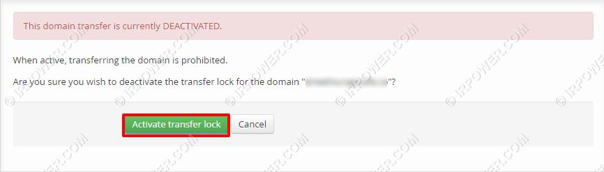 4- در صفحه جدید با انتخاب دکمه Deactivate Transfer Lock قفل دامنه غیر فعال خواهد شد.
