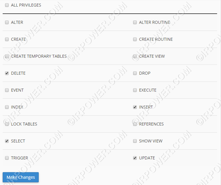 جهت انجام عملیات های عادی WordPress مانند ارسال پستهای وبلاگ، آپلود فایل های چند رسانه ای، ارسال نظرات، ایجاد کاربران جدید و همچنین نصب افزونه های WordPress، می توان تنها Privileges های SELECT،INSERT ،UPDATE و DELETE را فعال نمود.