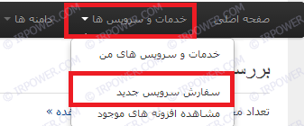 2- از طریق منو "خدمات و سرویس ها"، گزینه "سفارش سرویس جدید" را برگزینید.