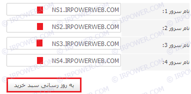 6- در این بخش می توانید نسبت به اعمال DNS های مورد نظر اقدام نمایید. پس از اعمال تغییرات، دکمه "بروز رسانی سبد خرید" را انتخاب نمایید.