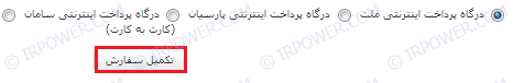 7- نوع پرداخت و در نهایت دکمه ثبت سفارش را انتخاب نمایید. (پس از اتمام این مرحله صورت حساب نمایان خواهد شد لذا می توانید نسبت به پرداخت آن اقدام نمایید. پس از پرداخت، ثبت دامنه انجام خواهد پذیرفت.)